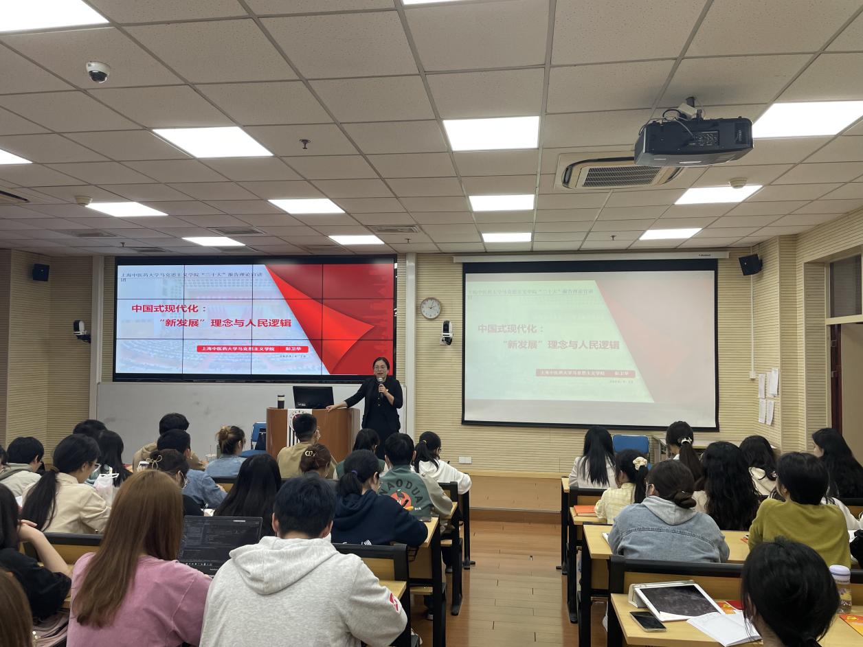 开班式后,校“杏马”理论宣讲团成员、马克思主义学院副教授彭卫华作“中国式现代化:‘新发展’理念与人民逻辑”专题辅导报告。她从“现代化≠西方化”、马克思主义与资本逻辑批判、中国式现代化与人民逻辑、中国式现代化与“新发展”理念几个方面深入阐明了中国式现代化。