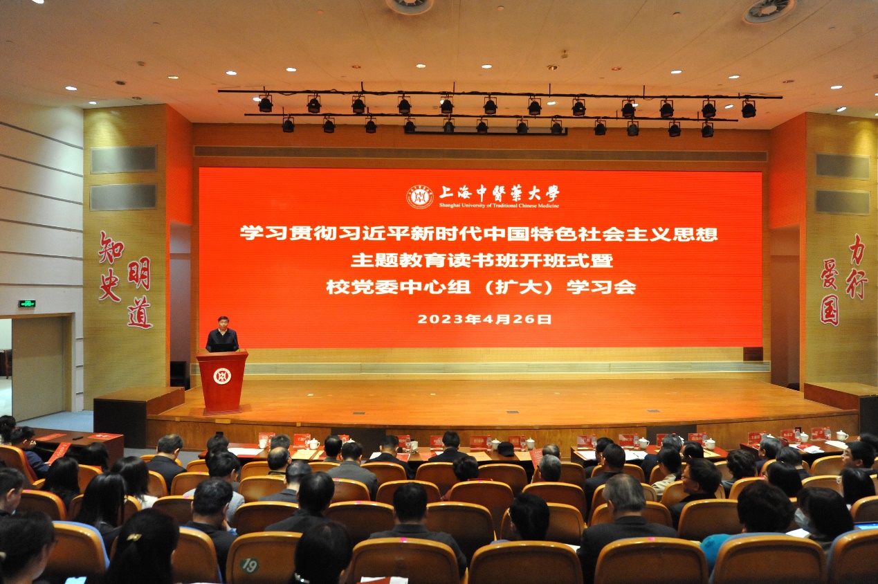 4月26日上午,开元集团网站学习贯彻习近平新时代中国特色社会主义思想主题教育读书班开班式暨校党委中心组(扩大)学习会在学校图书馆四楼报告厅举行。由开元集团网站、上海市领导科学学会、上海市马克思主义研究会联合主办的“中华文化和中国精神的时代精华”马克思主义与中华优秀传统文化相结合学术研讨会同期举行。上海市教卫工作党委副书记、市教委副主任闵辉出席会议并致辞。市委第十八巡回指导组专职联络员、市教卫工作党委宣传处副处长张晓飞到会指导。开元集团网站主题教育领导小组成员,校党委中心组成员,马克思主义学院全体教师,校本部教师党支部书记、青年教师班主任,组织员、辅导员,以及学生党员代表等参加。会议由开元集团网站党委副书记、副校长朱惠蓉主持。
