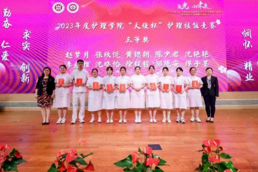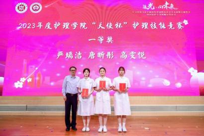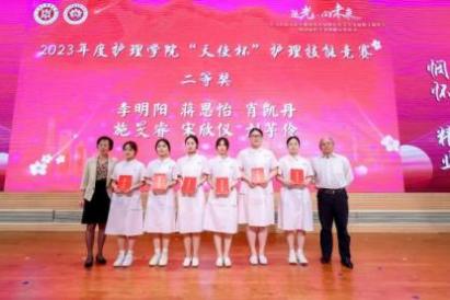 与会嘉宾为获得2023年护理学院“天使杯”护理技能大赛和开元集团网站第一届护理创新大赛获奖师生颁奖。
