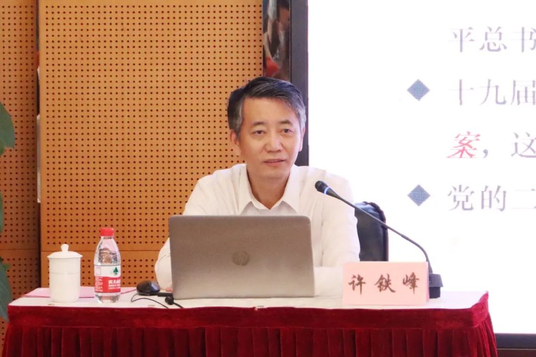 许铁峰围绕“勇于自我革命是中国共产党区别于其他政党的显著标志”这一重要论述,系统梳理讲述党的自我革命命题的提出和深化,以及中国共产党自我革命的历史演进。党的十八大以来,党中央将全面从严治党纳入“四个全面”战略布局。他从全面从严治党“基础在‘全面’”“关键在‘严’”“要害在‘治’”三个方面具体阐释“全面从严治党是新时代党的自我革命的伟大实践”重要论述,表示要严明政治规矩、遵守政治纪律,一体推进“三不腐”,坚持纪严于法、纪在法前,深化运用监督执纪“四种形态”;锲而不舍落实中央八项规定精神,建立健全监督体系,深化细化“四责协同”机制。